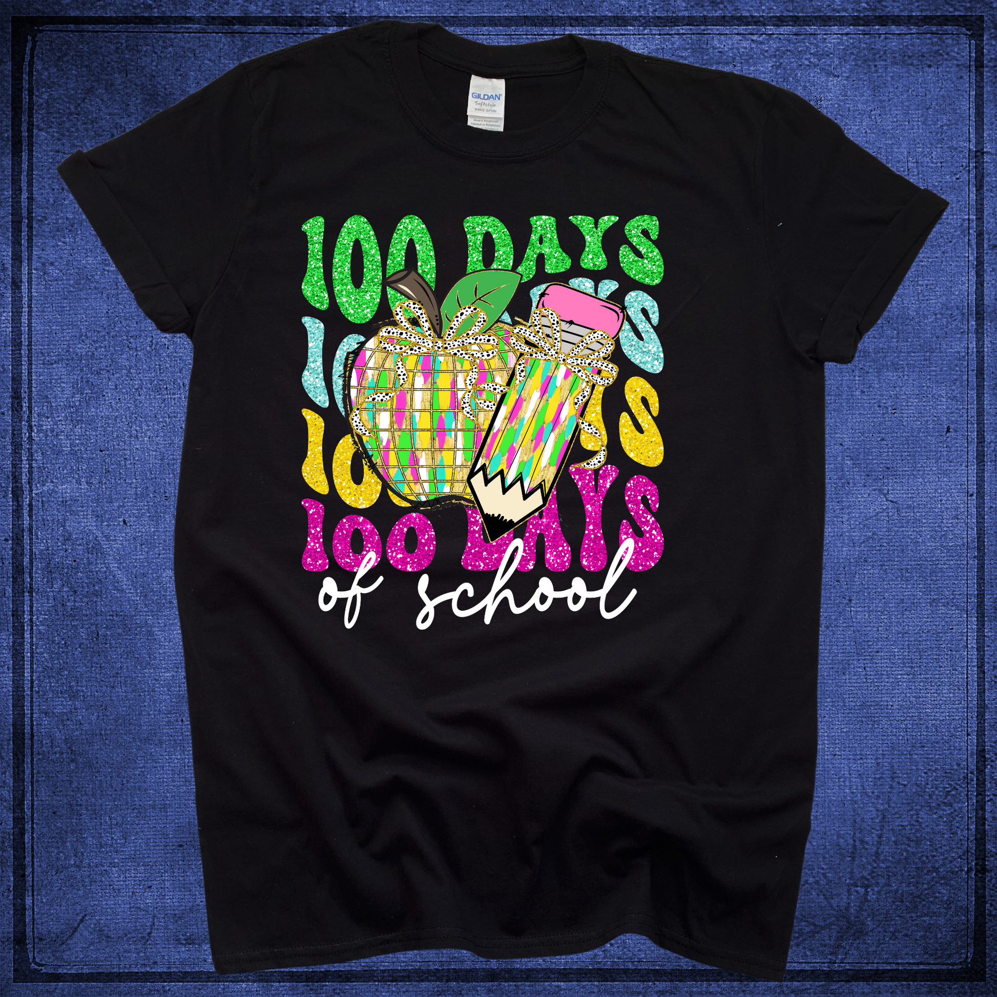Apple & Pencil -100 Days of School - Black Shirt