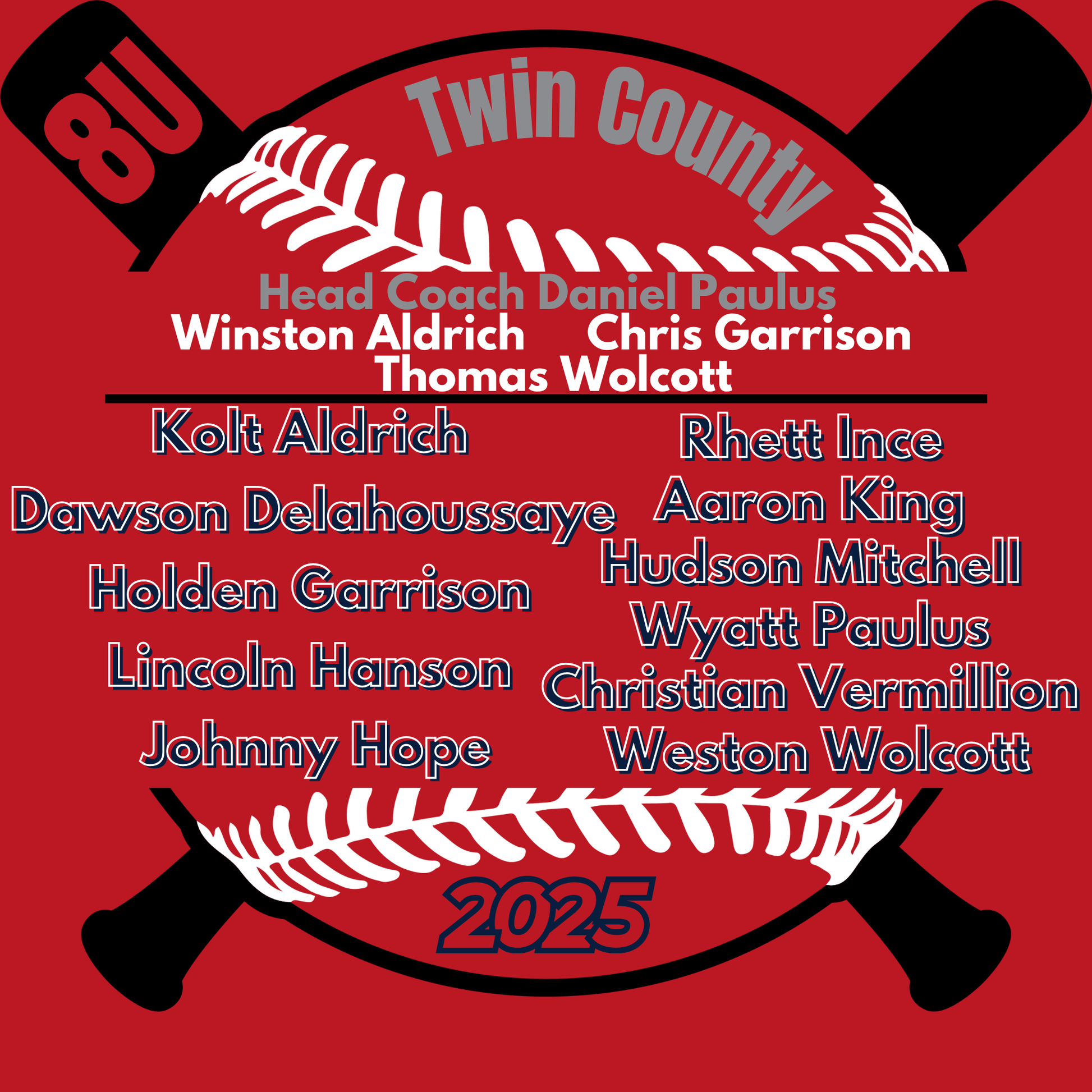 Bats 8U Twin County 2025 Red Dry Fit Shirt