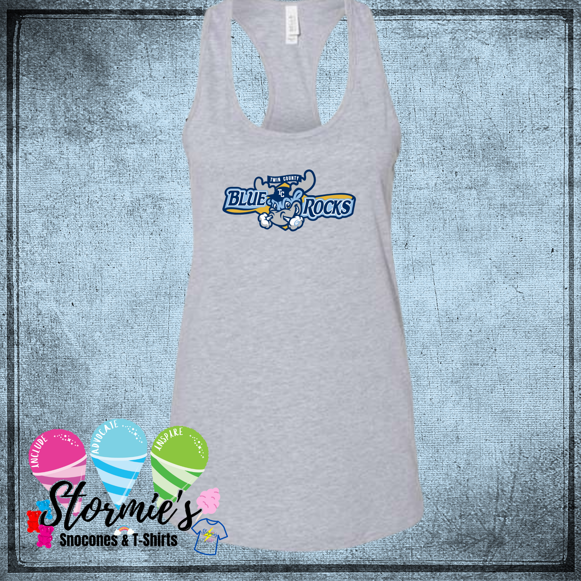 Blue Rocks Twin County 2025 Bella Racer Back Gray Tank Top