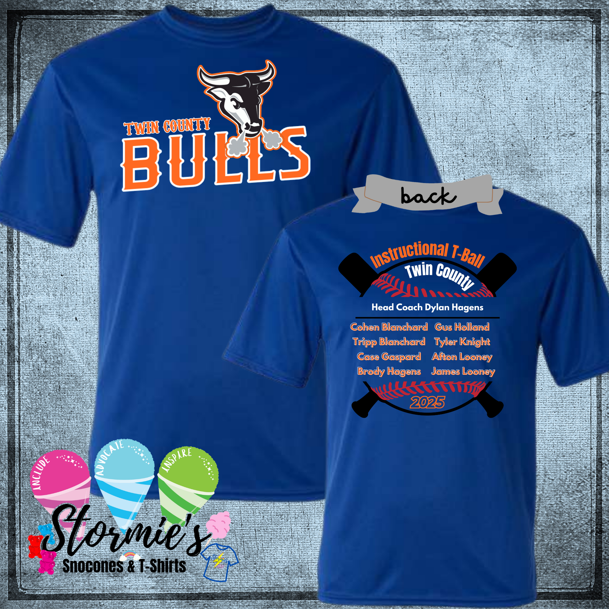 Bulls Instructional T-Ball Twin County 2025 Royal Blue Dry Fit Shirt