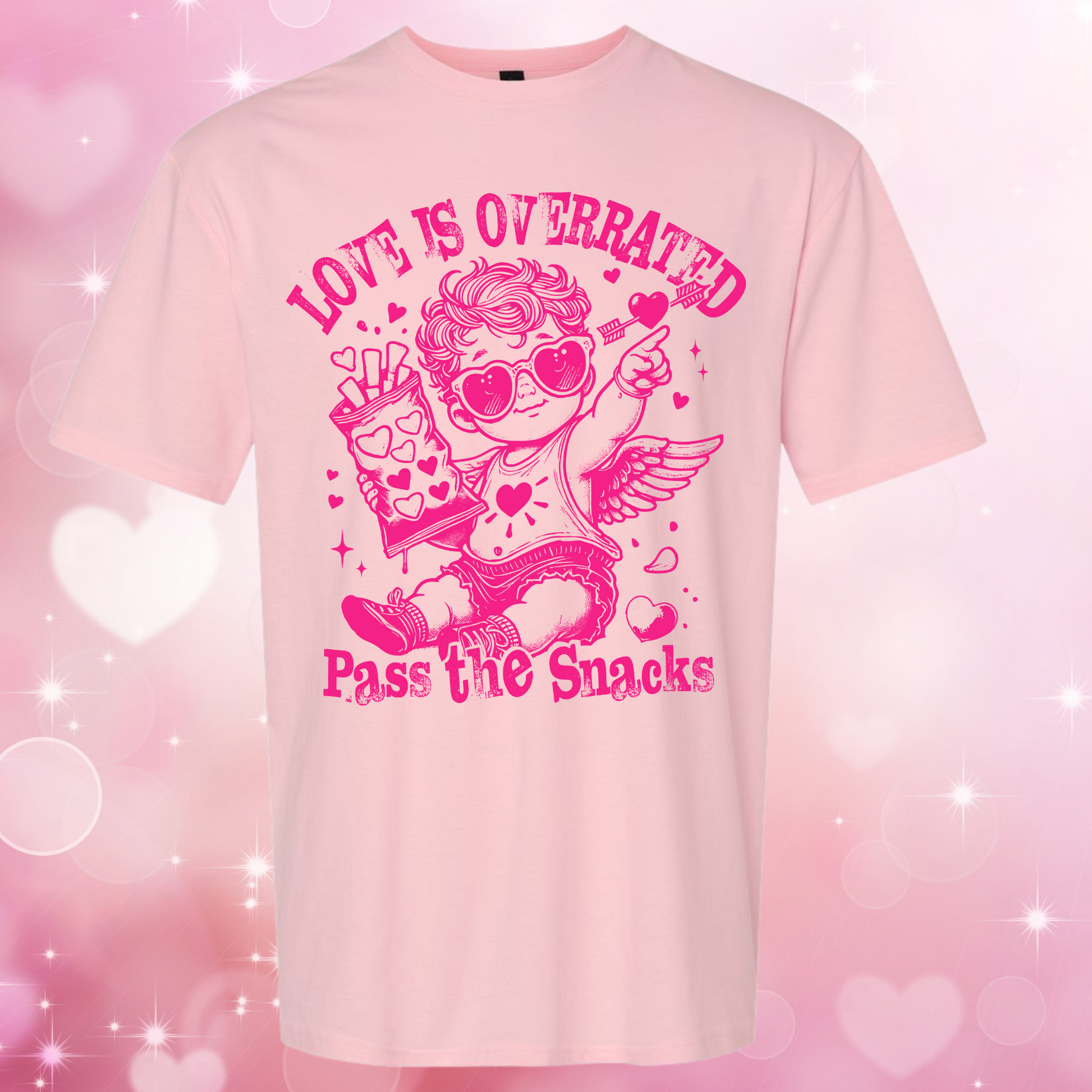 Love is Overrated Pass the Snacks Valentine's Day Shirt
