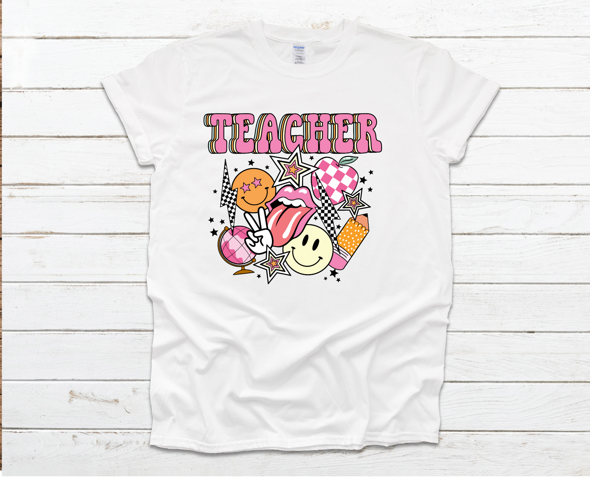 Teacher Trendy Gildan Softstyle or Bella Canvas White Shirt